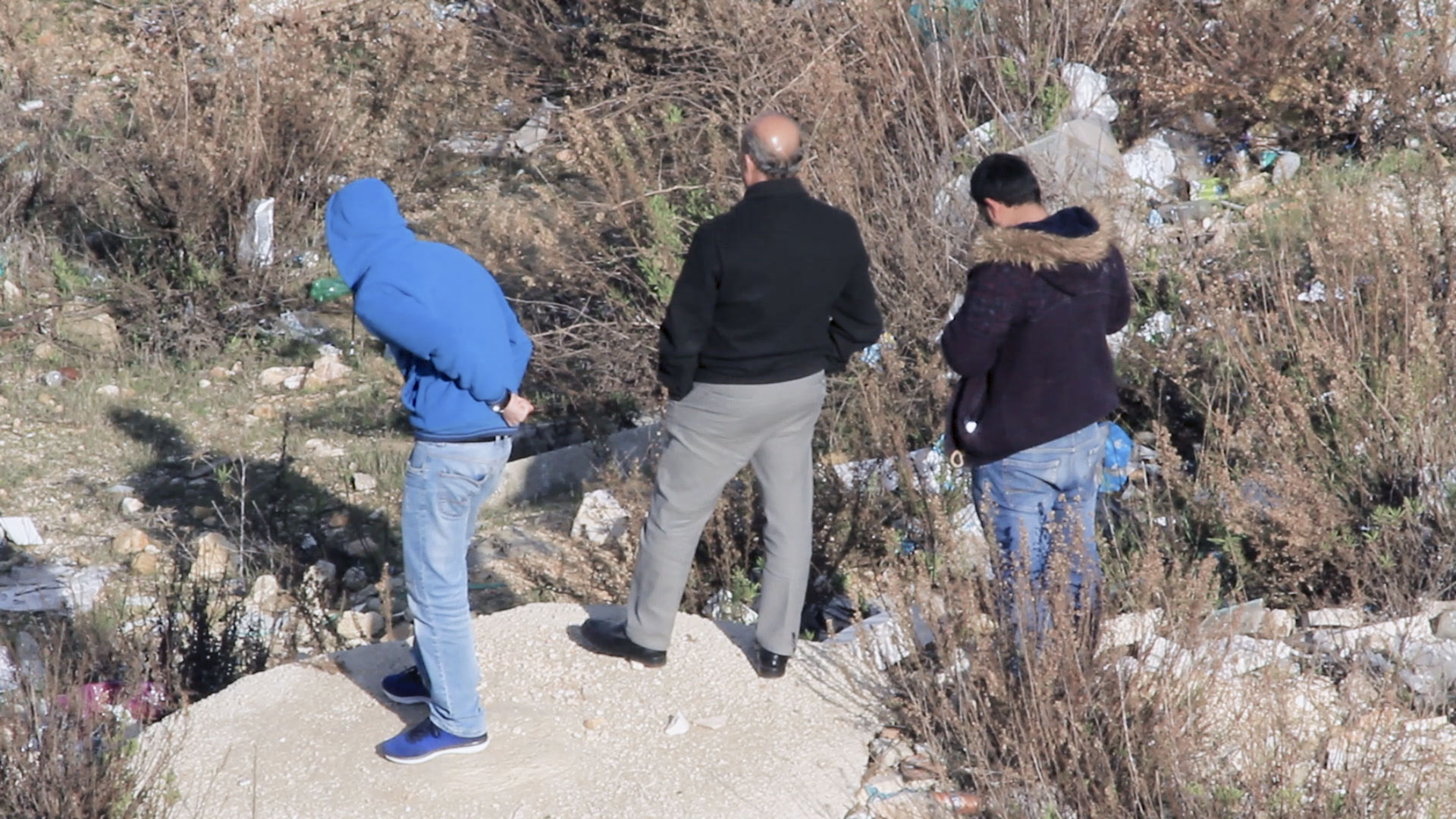 Amid the buildings and streets of Ramallah, men take up positions. In a continuous, unedited shot, the camera witnesses a confrontation between Palestinians and Israeli soldiers illegally stationed in the city. With a single gesture, the viewer experiences the occupation of Palestinian territory in real time.